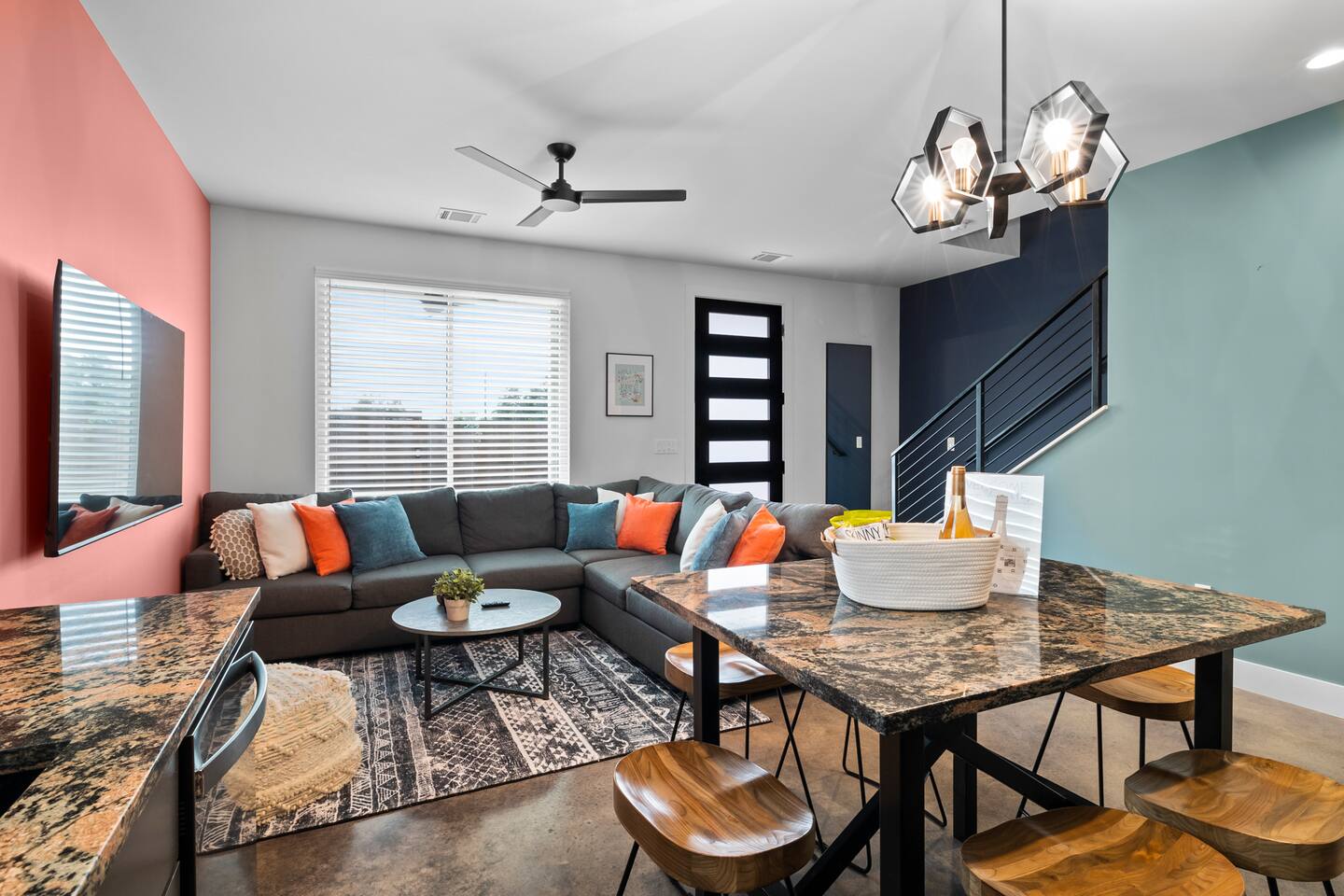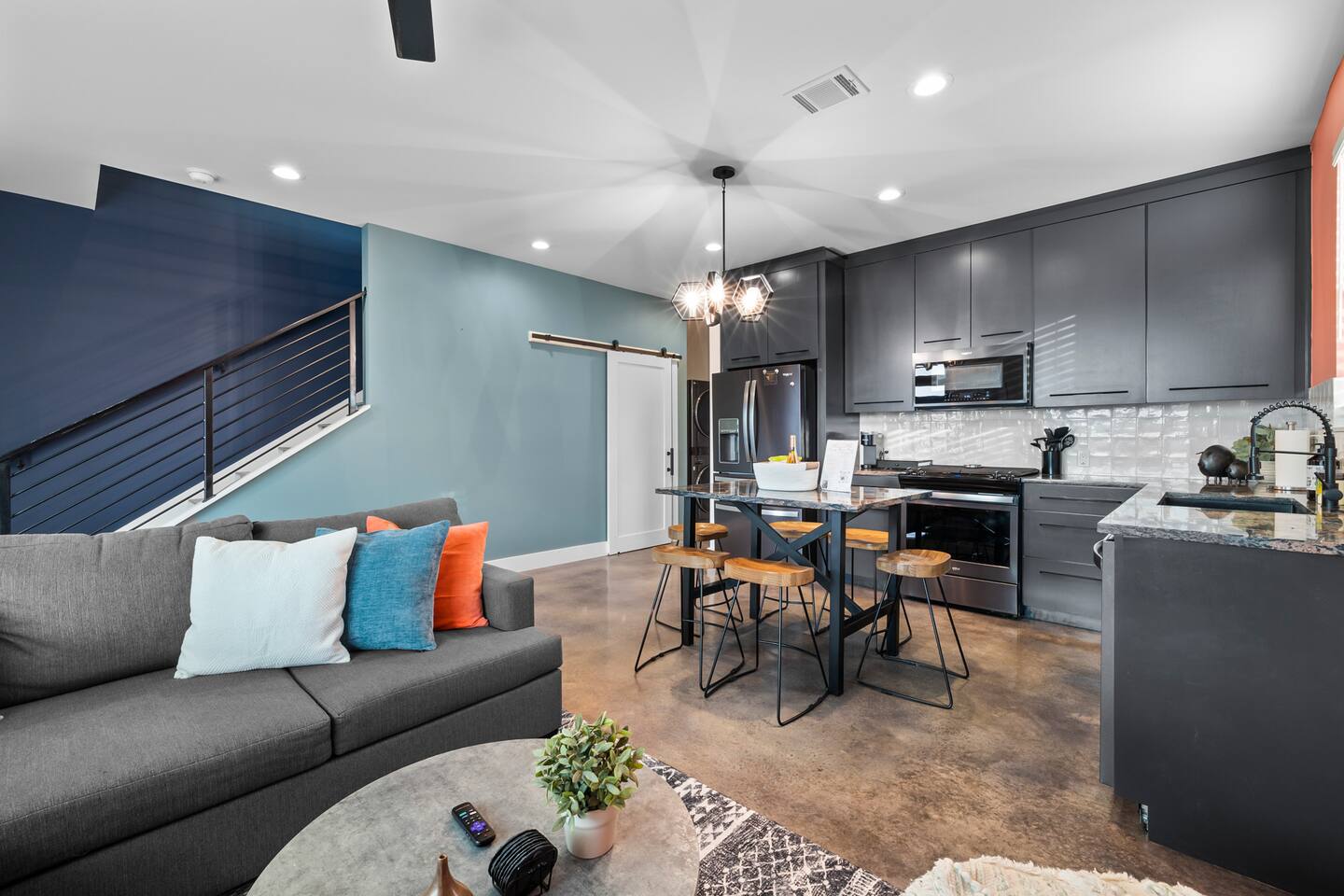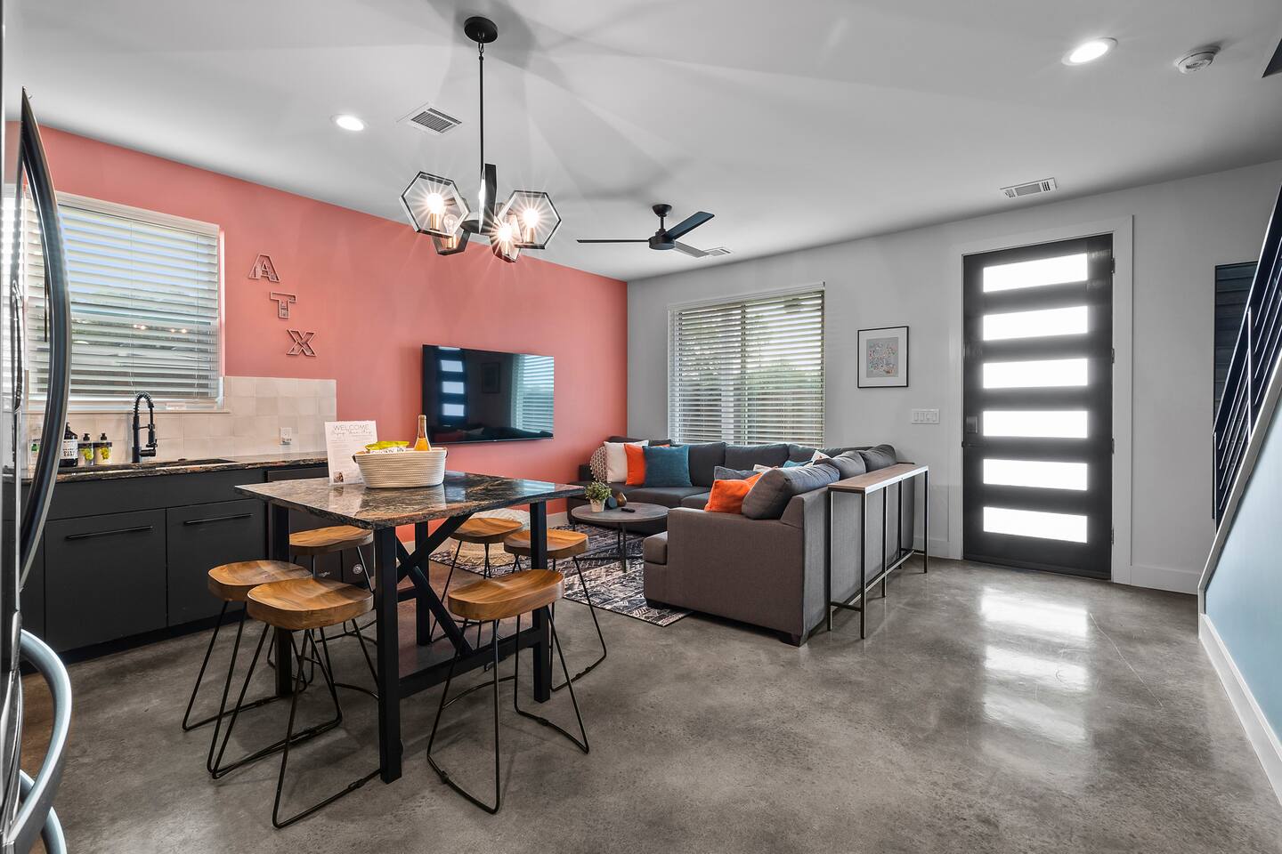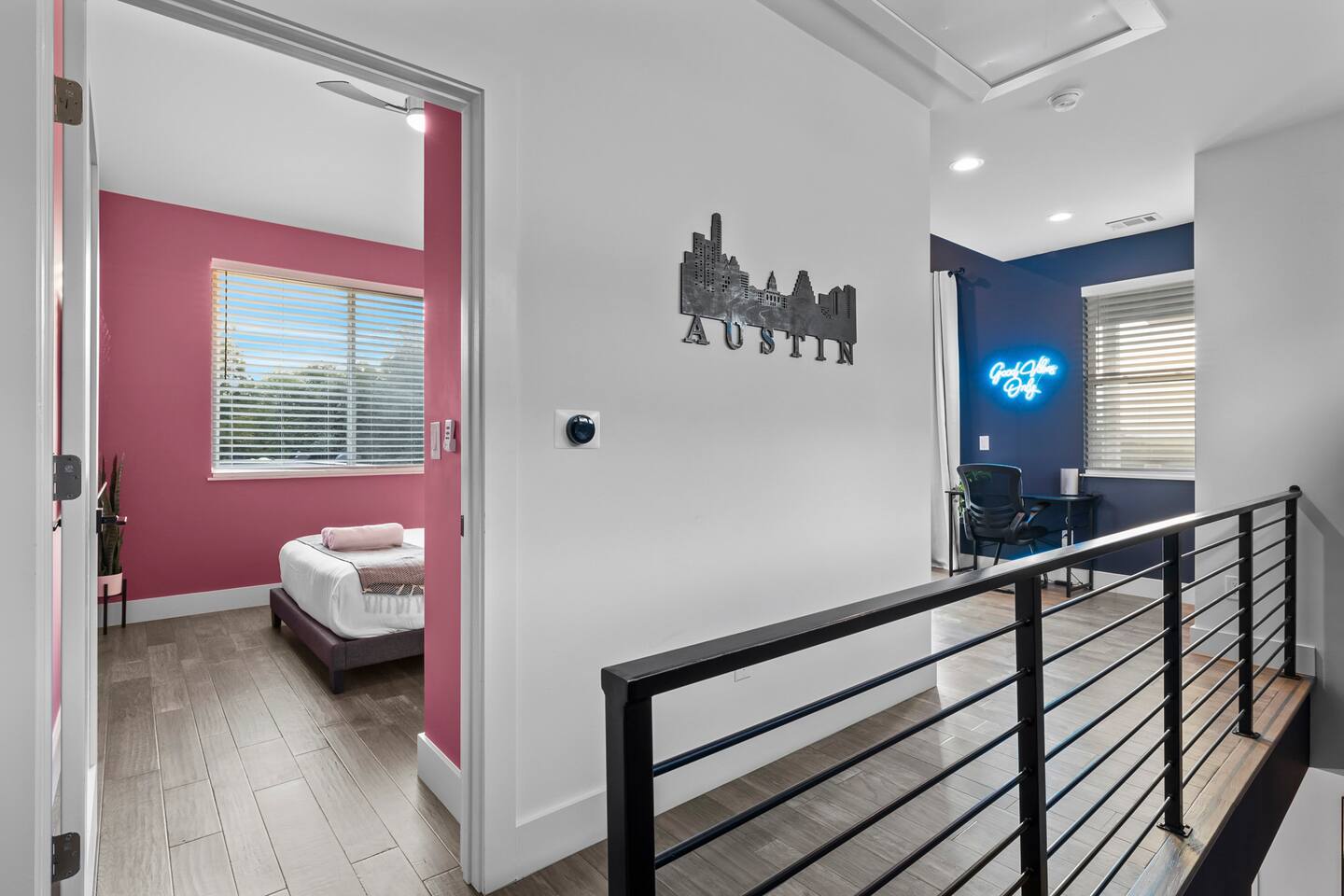Discover the Ultimate East Austin Retreat: Ideal for family, friends, or business travelers, this stylish home is just 5 miles from Austin Airport and a quick 15-minute drive to downtown! Enjoy a warm welcome and breathtaking views of Austin's skyline from your private balcony! Conveniently located with easy access to Downtown, Rainey Street, South Congress (4.5 mi), Airport (5.4 mi), Circuit of the Americas (10 mi), and UT (6.5 mi). IMPORTANT- The area is an up and coming neighborhood.